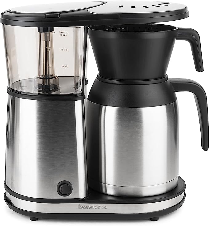 A quality home brewer to provide an at-home cafe quality cup. This brewer acts like a pour over- delivering temperature regulated water in a consistent flow to evenly saturate the bed of coffee grounds. Simply fill the water basin, add your coffee grounds to the filter in the basket on the insulated carafe, and press the button for a quality brew. It can brew up to 40oz of coffee in about 6 minutes.